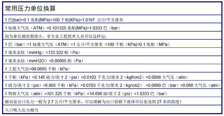 新聞?wù)?今日分享蠕動泵常用壓力單位的換算